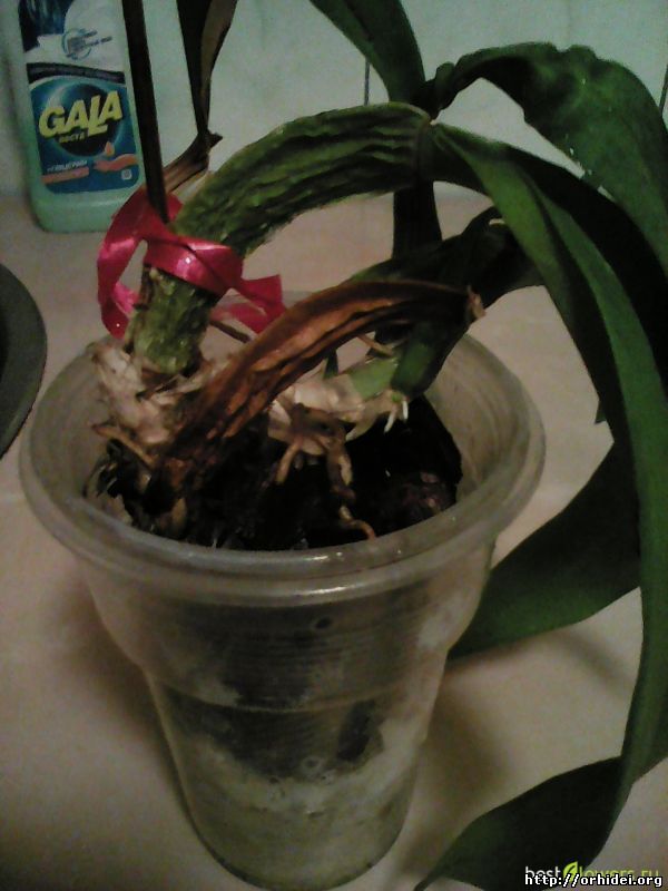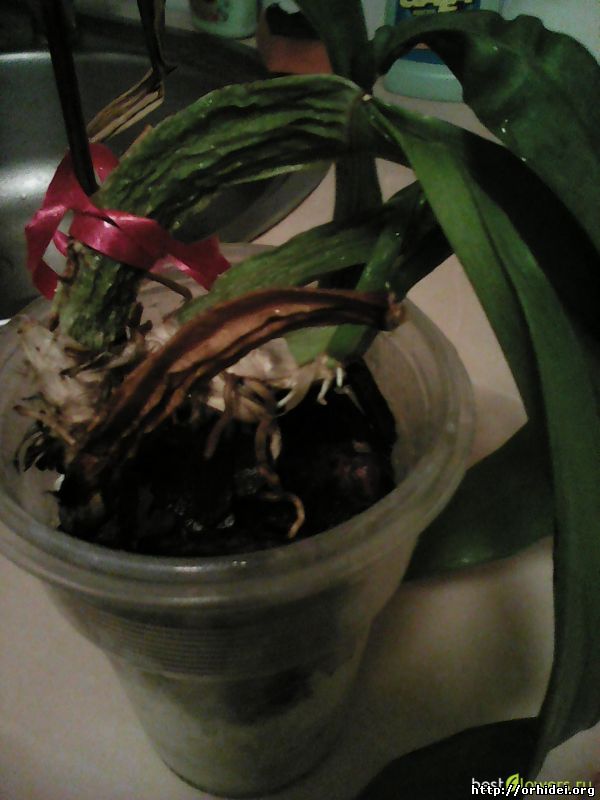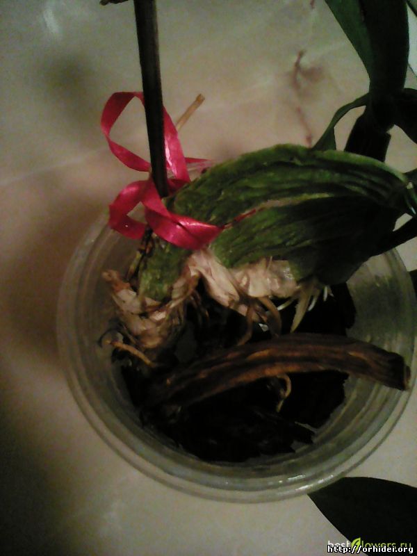 | Алясик, Н-да, грустновато, это и есть гниль по ризоме. Попробуй сделать еще пару срезов и если картинка не будет улучшаться, единственное, что ты можешь сделать это привязать эту бульбочку к опорной палочке и вставить в горшочек с субстратом, оперев торец на кусочек пенопласта. Иногда увлажняй субстрат, проливом по краю горшка, и жди чуда. Это типа "последний писк" - ты сделала для нее все, что могла.